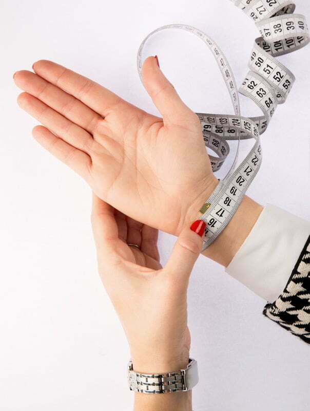 Vidutinis moterų apyrankės dydis yra apie 18 cm, o vyrų - apie 20,5 cm.
